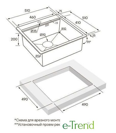 | Способ установки | врезная на столешницу, врезная вровень со столешницей |