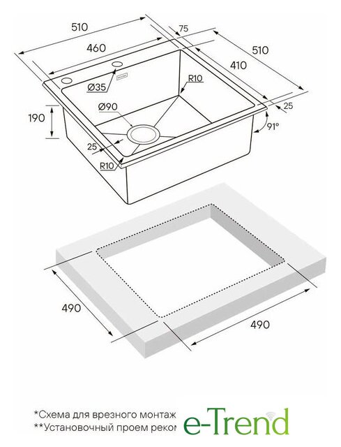 | Способ установки | врезная на столешницу |