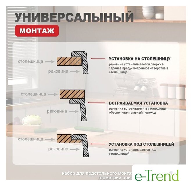 | Способ установки | врезная на столешницу |