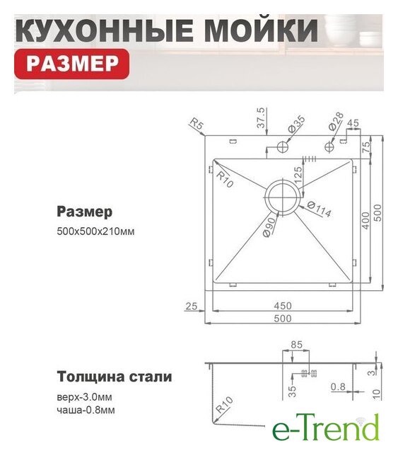 | Ширина мойки | 50 см |