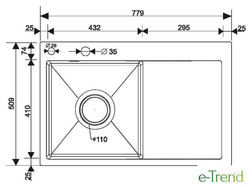| Длина мойки | 77.9 см |
