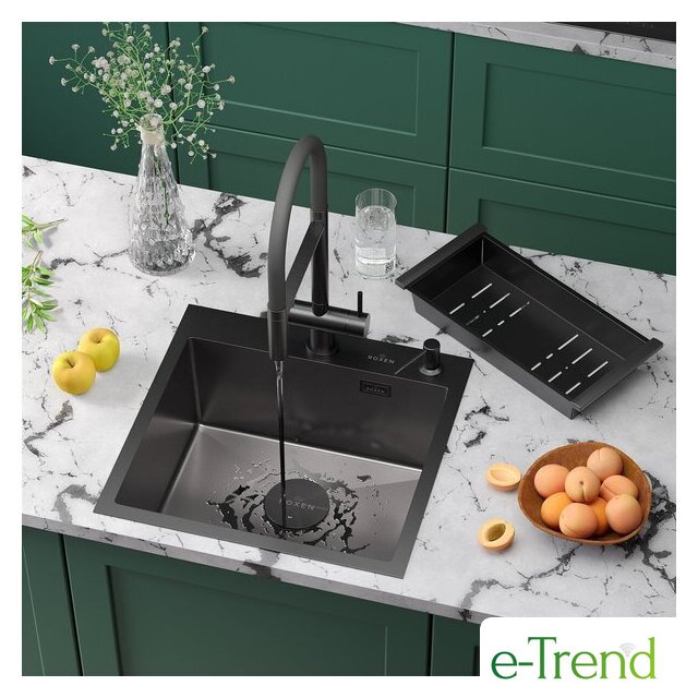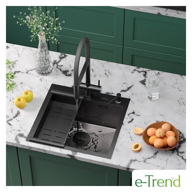 Кухонные мойки Roxen Roxen Simple 560220-50B-V графит/текстурная PVD покрытие (с коландером и дозатором) Код товара: 11695158