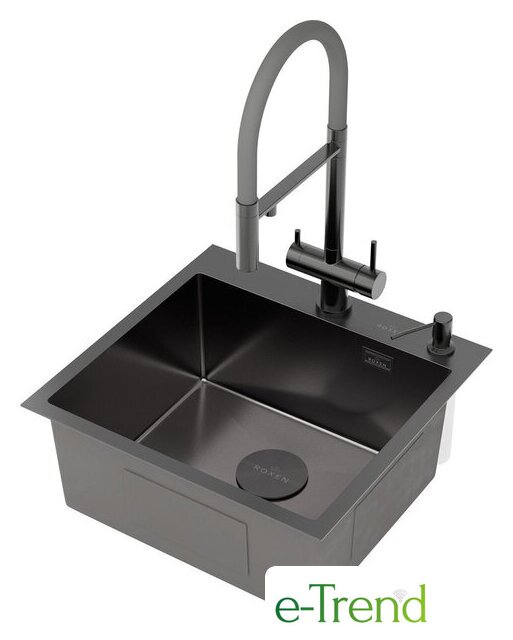Кухонная мойка Roxen Simple 560220-50B-V графит/текстурная PVD покрытие (с коландером и дозатором)