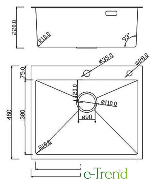 | Ширина мойки | 48 см |