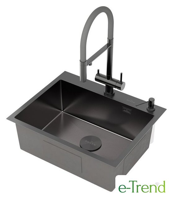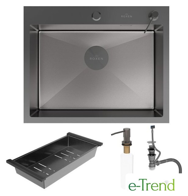 Кухонная мойка Roxen Simple 560220-60B-V графит/текстурная PVD покрытие (с коландером и дозатором)
