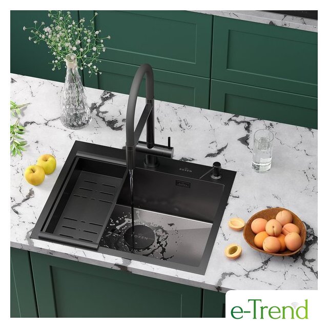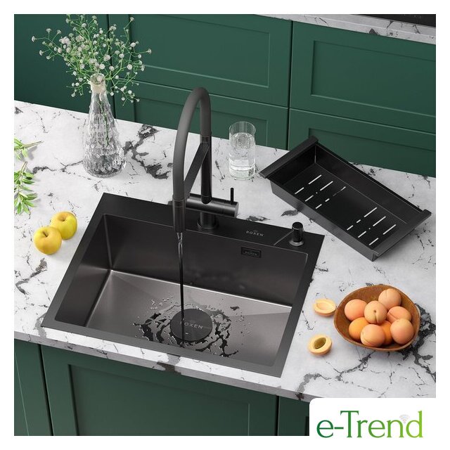 Кухонные мойки Roxen Roxen Simple 560220-60B-V графит/текстурная PVD покрытие (с коландером и дозатором) Код товара: 11695162