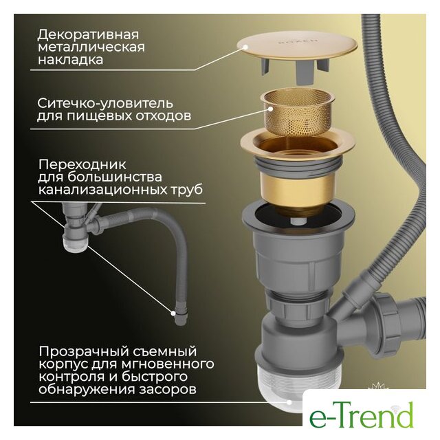 | Комплектация | ✅ стальная мойка;, ✅ сифон;, ✅декоративная накладка;, ✅ коландер из нержавеющей стали;, ✅ дозатор для моющих средств;, ✅ корзинчатый вентиль;, ✅ 2 заглушки на отверстия;, ✅ комплект креплений к столешнице. |