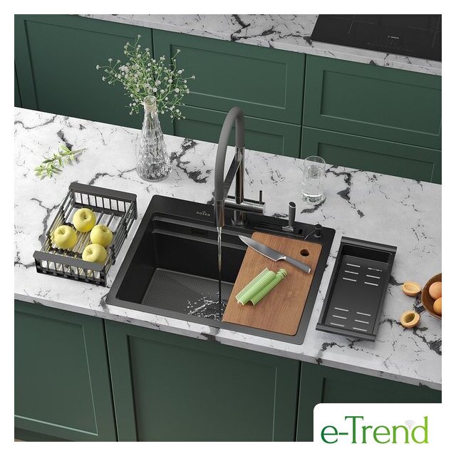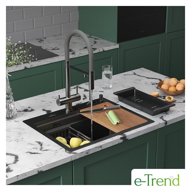 | Комплектация | ✅стальная мойка✅сифон✅корзинчатый вентиль✅декоративная накладка✅держатель для ночей✅коландер из нержавеющей стали✅коландер телескопический✅дозатор для моющих средств✅разделочная доска✅2 заглушки на отверстия✅комплект креплений к столешнице |