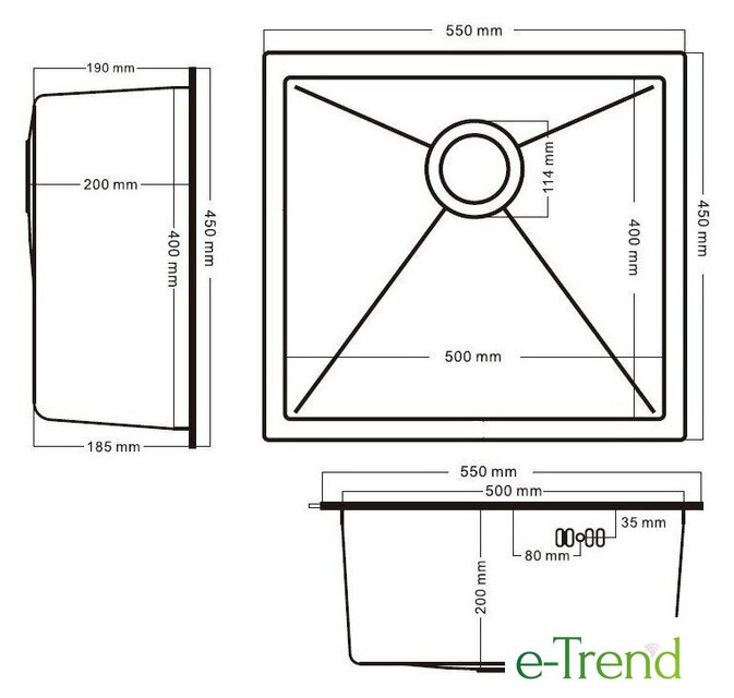 врезная под столешницу, нержавеющая сталь, размеры: 55x45 см по цене 455,00 руб.