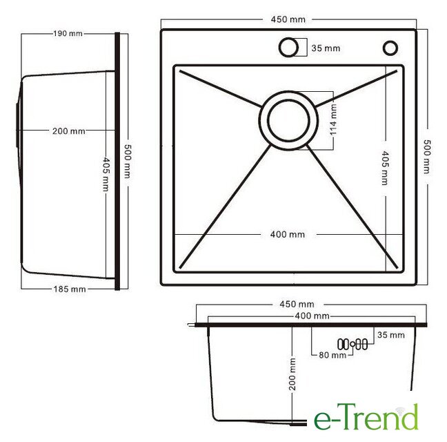 врезная на столешницу, нержавеющая сталь, размеры: 45x50 см по цене 355,00 руб.