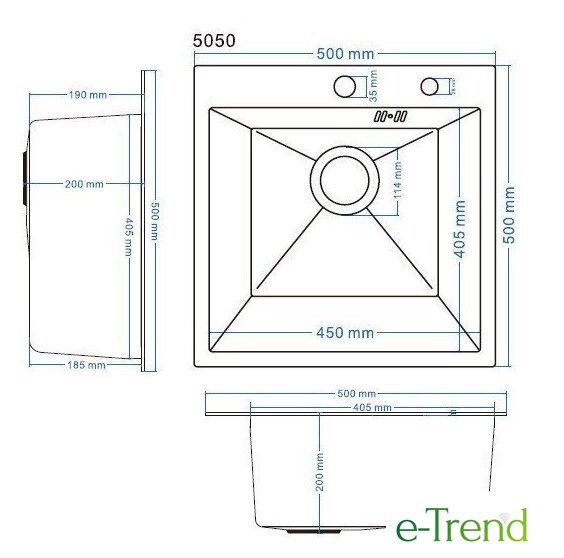 врезная на столешницу, нержавеющая сталь, размеры: 50x50 см
