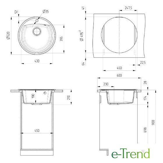 | Ширина мойки | 52 см |