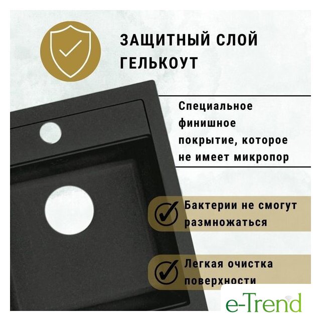 врезная на столешницу, искусственный камень, размеры: 46.5x50.5 см, в шкаф 50 см