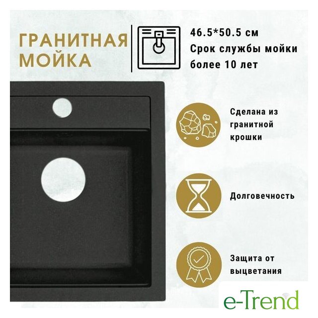 врезная на столешницу, искусственный камень, размеры: 46.5x50.5 см, в шкаф 50 см