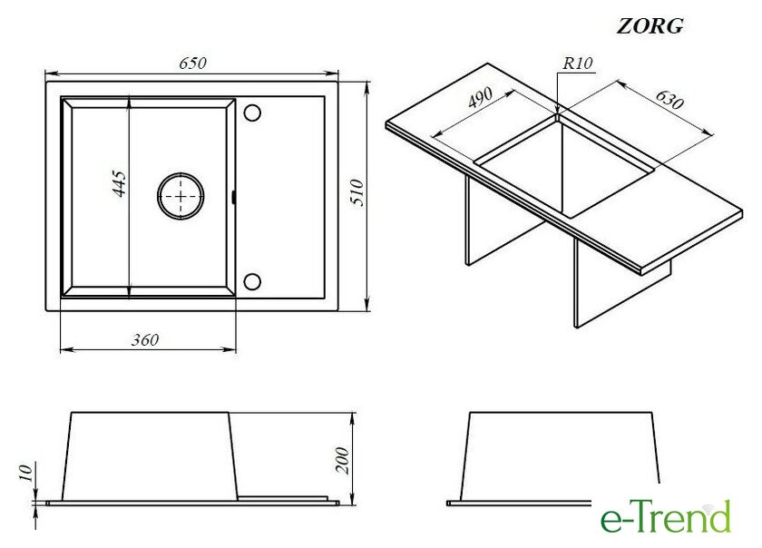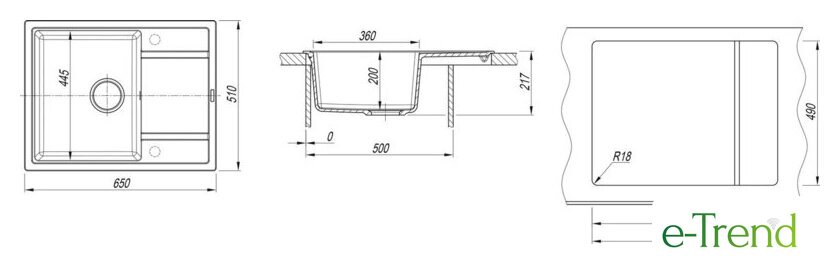 врезная на столешницу, искусственный камень, размеры: 65x51 см, в шкаф 50 см