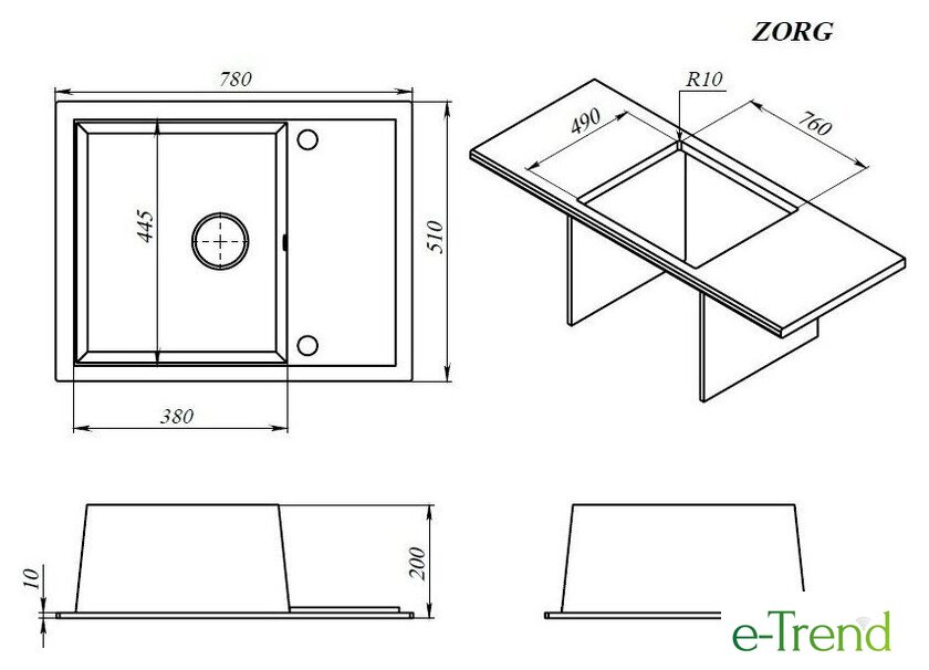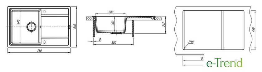 врезная на столешницу, искусственный камень, размеры: 78x51 см, в шкаф 50 см