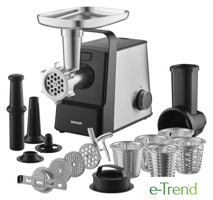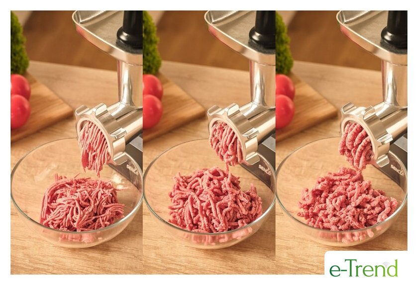 | Полная комплектация | мясорубка, 3 формовочных диска, нож из нержавеющей стали, алюминиевый поддон, толкатель, насадка для колбас, насадка для кеббе, терки для сыра и орехов, инструкция |