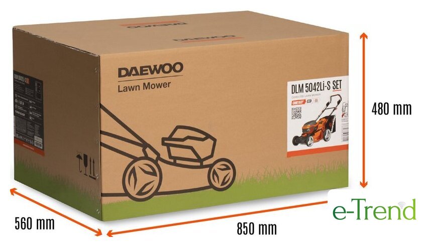 | Комплектация | - Газонокосилка - 1 шт., - Аккумулятор 5,0 Ач - 2 шт., - Зарядное устройство - 1 шт., - Нижняя часть рукоятки - 1 шт., - Верхняя рукоятка - 1 шт., - Травосборник - 1 шт., - Крепежные элементы - 1 комплект, - Руководство по эксплуатации, - Гарантийный талон, - Коробка |