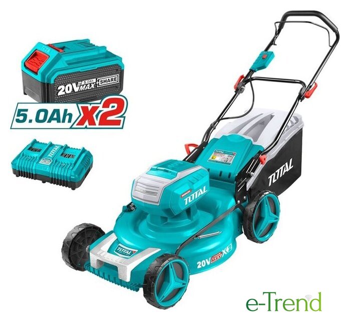 | Комплектация | - Газонокосилка аккумуляторная - 1 шт.- Травосборник 60 л - 1 шт.- Заглушка для мульчирования - 1 шт.- Устройство бокового выброса - 1 шт.- Аккумулятор 5,0 Ач - 2 шт.- Зарядное устройство - 1 шт.- Инструкция |