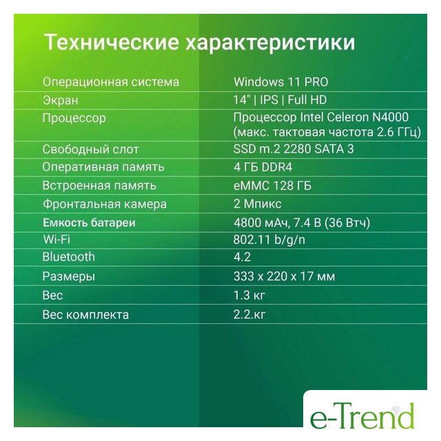 | Конфигурация накопителя | SSD 128 ГБ |