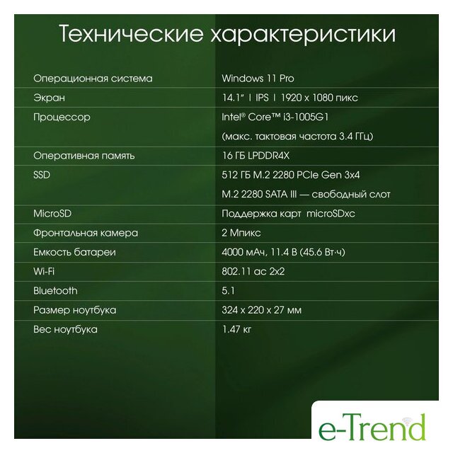 | Конфигурация накопителя | SSD 512 ГБ |