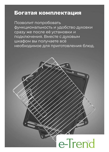 | Комплектация | стандартный противень, глубокий противень, решетка, приспособление для извлечения противней |