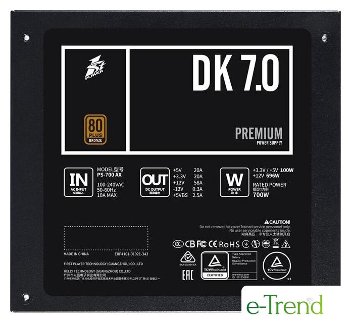 | Сертификат 80 PLUS | бронзовый |