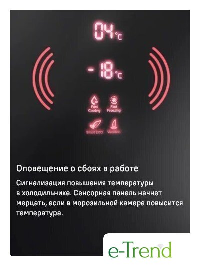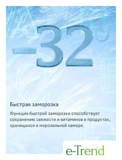 | Режимы и функции | суперзаморозка, суперохлаждение, независимая регулировка температуры, ECO, отпуск, сигнал открытой двери |