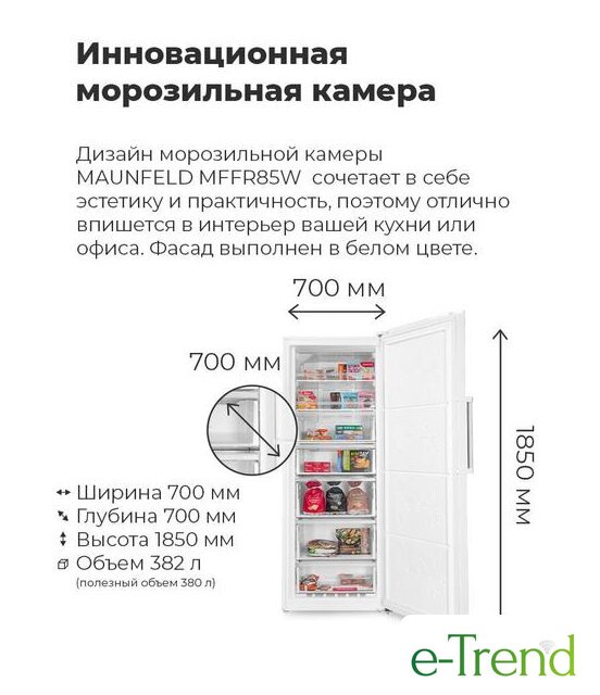 | Полезный объём морозильной камеры | 380 л |