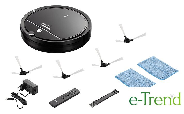 | Комплектация | сетевой адаптерпульт ДУробот-пылесосруководство по эксплуатациикомплект щеток (2 шт.)сервисная книжкащеточка для очисткинасадка для влажной уборки (2 шт.)EPA-фильтр |