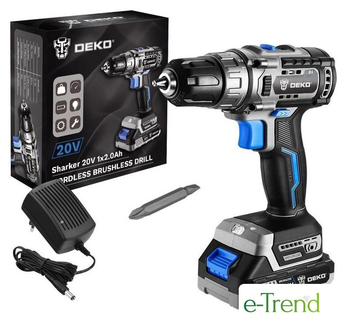 | Комплектация | Дрель-шуруповерт DEKO Sharker 20V - 1 штАккумулятор - 1 штЗарядное устройство - 1 штБита - 1 штИнструкцияКоробка |