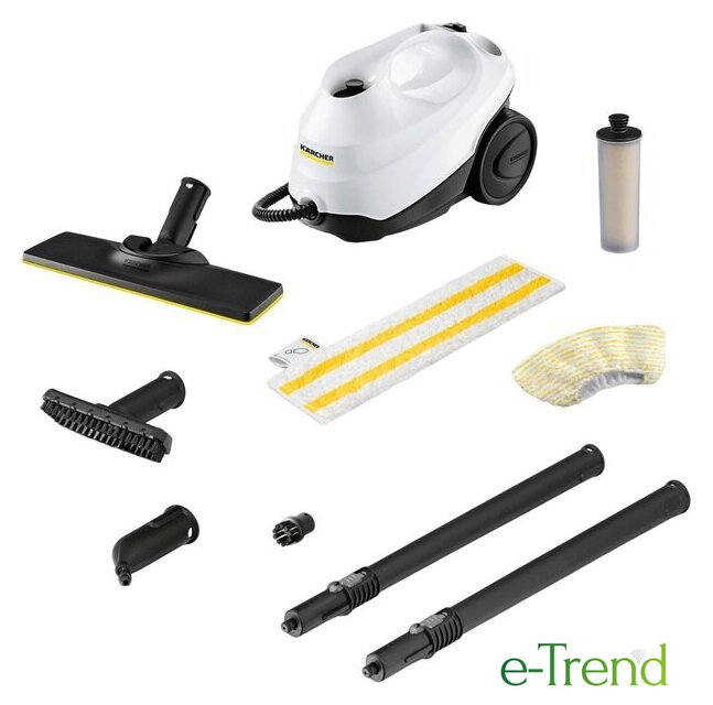 | Дополнительные насадки и приспособления | - Универсальная салфетка для пола EasyFix: 1 шт.- Обтяжка из микроволокна для ручной насадки: 1 шт.- Антинакипин (картридж)- Точечное сопло- Ручная насадка- Круглая щетка, черная: 1 шт.- Насадка для пола: EasyFix- Удлинительные трубки (2 х 0,5 м) |