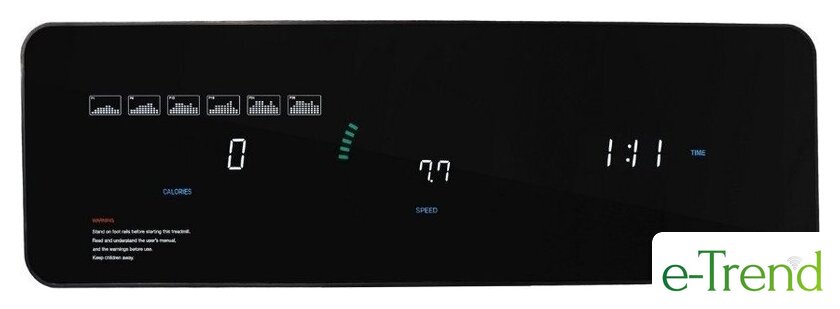 | Отображаемая информация | время тренировки, пройденная дистанция, текущая скорость, расход калорий, пульс |