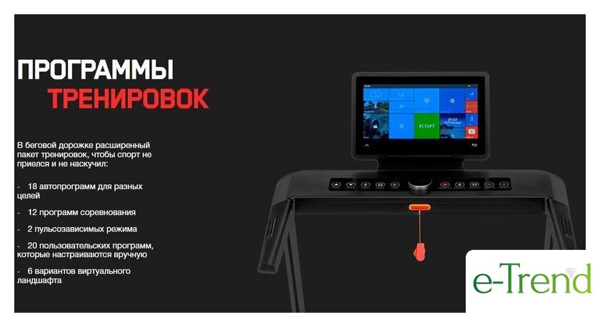 | Отображаемая информация | время тренировки, пройденная дистанция, текущая скорость, расход калорий, пульс |