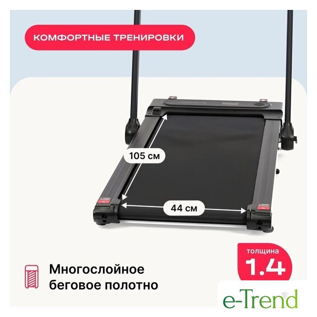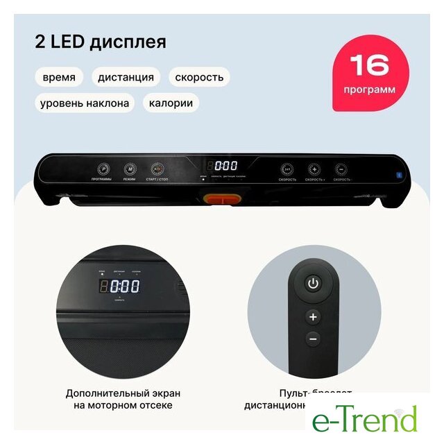 | Отображаемая информация | время тренировки, пройденная дистанция, текущая скорость, расход калорий, угол наклона |