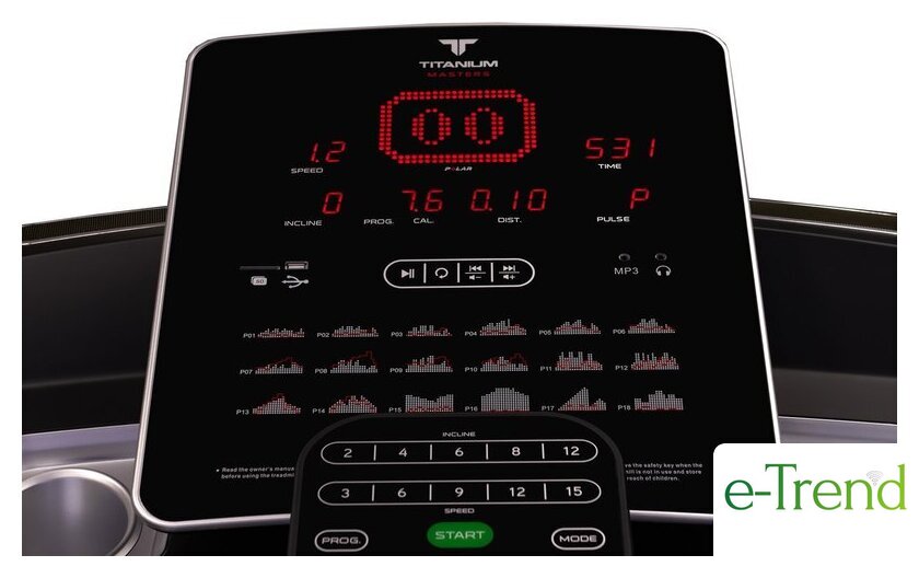 | Все программы | - 18 предустановленных программ- 3 программы обратного отсчета (время, дистанция, калории)- Пульсозависимые программы 3- Пользовательские программы 3- Ручной режим |