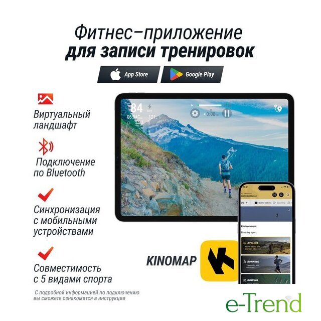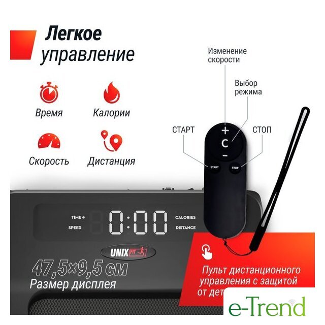 | Отображаемая информация | время тренировки, пройденная дистанция, текущая скорость, расход калорий |