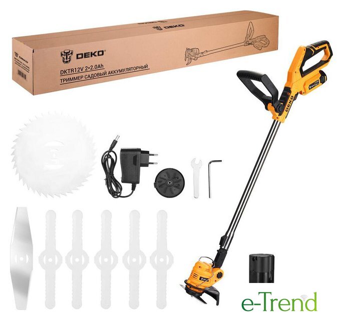 | Комплектация | - Полуавтоматическая катушка с леской - 1 шт .- Аккумулятор 2,0 Ач - 2 шт.- Зарядное устройство - 1 шт.- Режущий диск - 1 шт.- Металлический нож - 1 шт .- Пластиковые ножи - 5 шт.- Триммерная головка - 1 шт.- Шестигранный ключ - 1 шт .- Гаечный ключ - 1 шт.- Скоба - 1 шт.- Крепежный набор (винт - 1 шт, шайба - 1 шт, гайка - 2 шт) - 1 шт.- Руководство по эксплуатации |