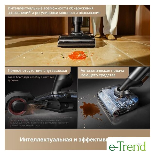 | Функциональные особенности | всасывание жидкостей, дисплей, автоматическая мойка швабры, автоматическая сушка швабры, дозатор для моющего средства |