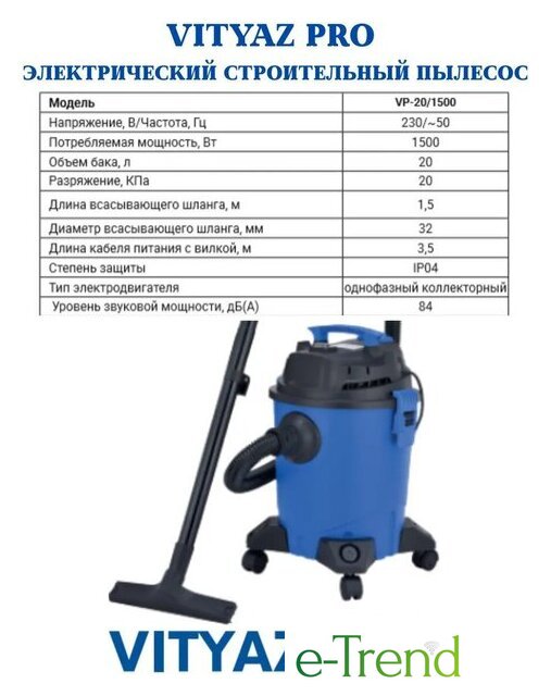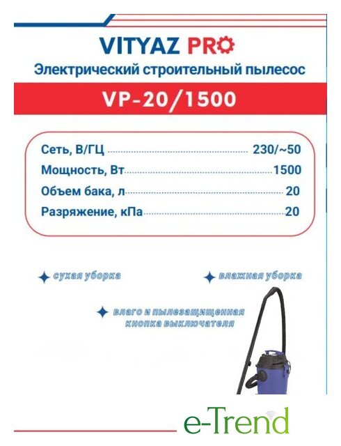 | Объём пылесборника | 20 л |