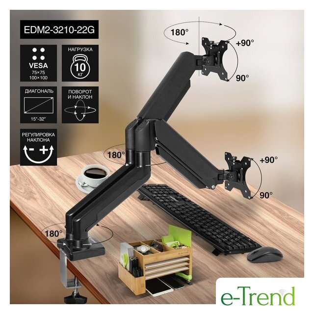 | Функциональные особенности | с регулировкой поворота, с регулировкой высоты, с кабель-каналом, струбцинное крепление |