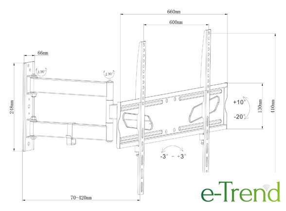 | Расстояние от стены (потолка) | 70 — 420 мм |
