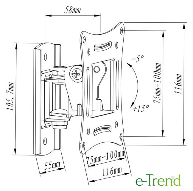 | Угол наклона (без ТВ) | 20 ° (-15°/+5°) |
