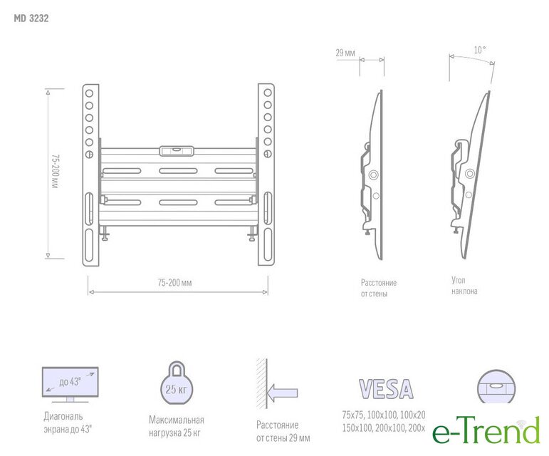 | Совместимость с креплением VESA | 50x50, 200x200 (мин. - макс.) |