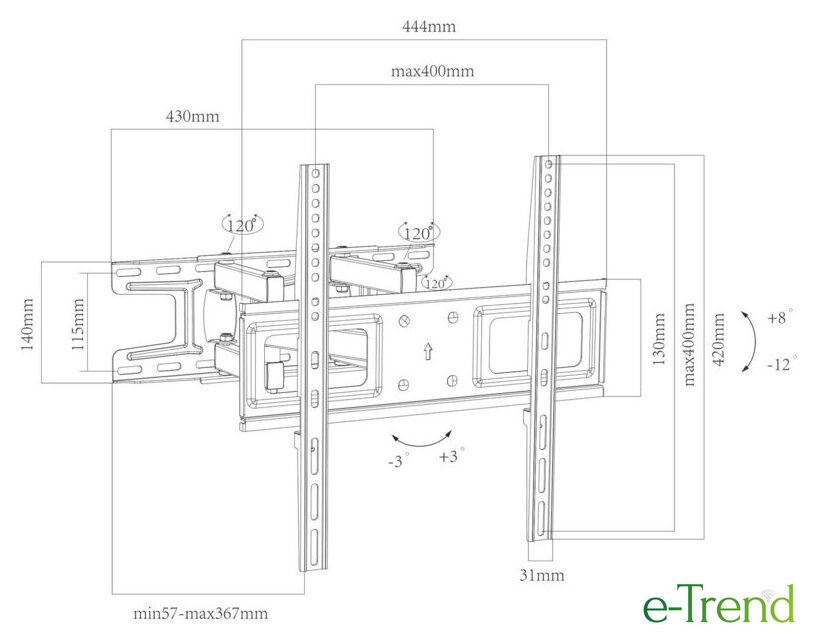| Расстояние от стены | 57 — 367 мм |