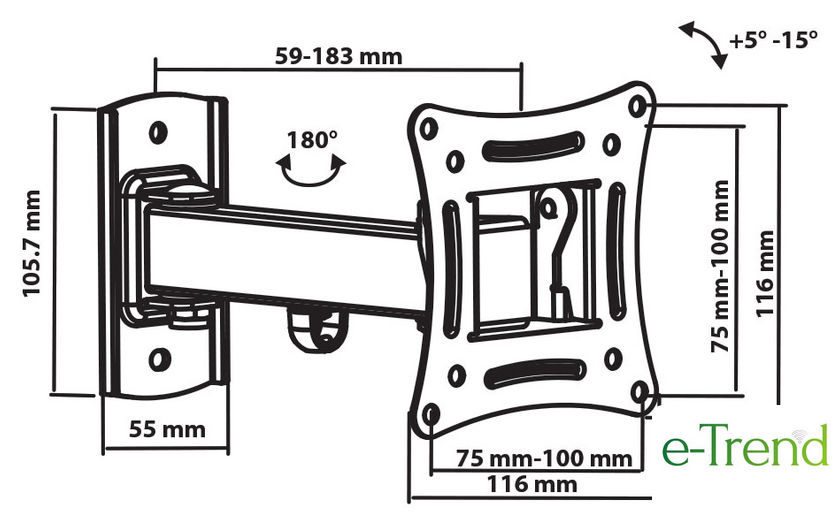 | Расстояние от стены (потолка) | 59 — 183 мм |
