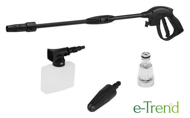 | Комплектация | - Очиститель высокого давления – 1 шт.;- Моечный пистолет – 1 шт.;- Шланг высокого давления 5 м – 1 шт.;- Удлинительная трубка – 1 шт.;- Веерная фреза – 1 шт.;- Роторная (грязевая) фреза – 1 шт.;- Пеногенератор – 1 шт.;- Моющая щетка – 1 шт.;- Мини-фильтр тонкой очистки 1/2” – 1 шт.;- Коннектор HPC 1/2” – 1 шт.;- Инструмент для чистки форсунки – 1 шт.;- Винт 4*16 мм – 2 шт.;- Винт 4*22 мм – 2 шт.;- Руководство по эксплуатации – 1 шт.;- Упаковка |