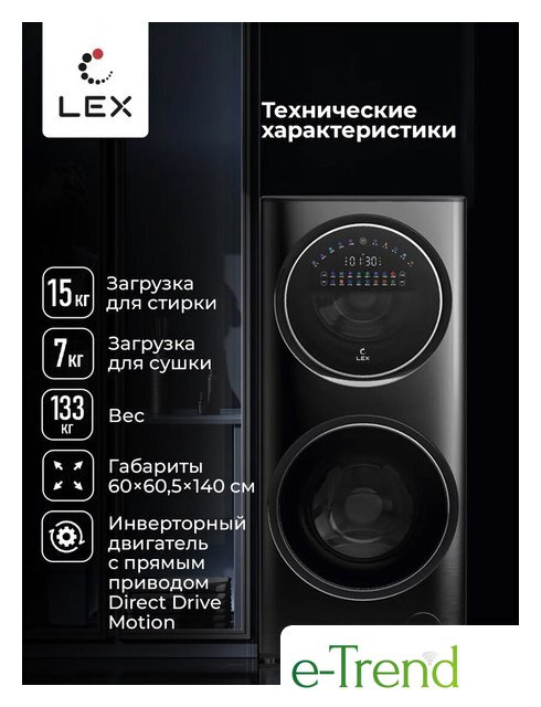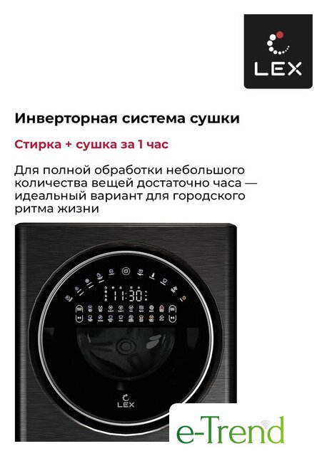| Годовой расход электроэнергии (стирка+сушка) | 261.8 кВт·ч/год |