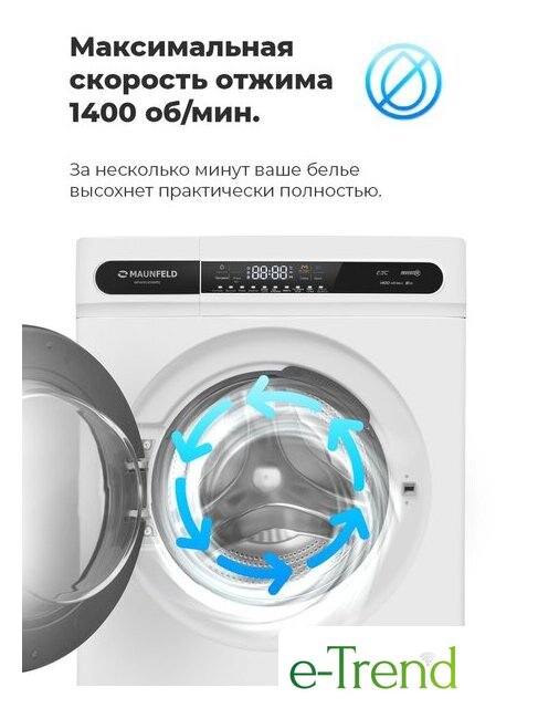 | Максимальная скорость отжима | 1400 об/мин |