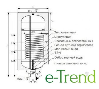 102 л, 16 кВт, время нагрева 120 мин, 108×48×48 см